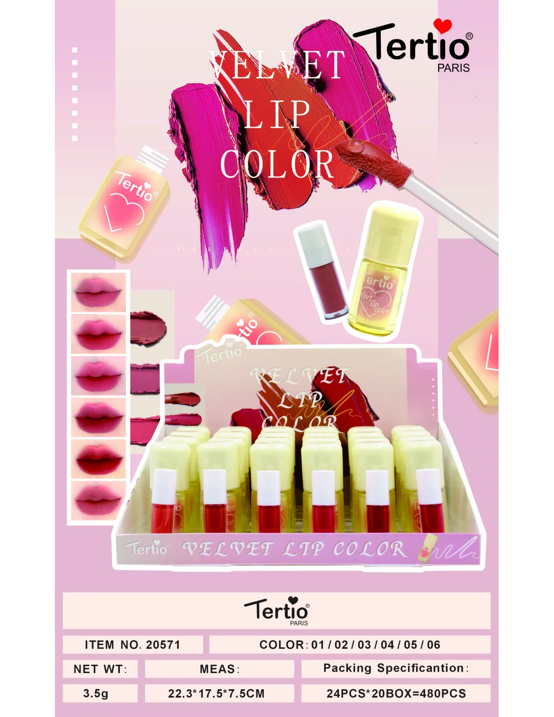 - El Velvet Lip Color de Tertio combina la intensidad de un pintalabios líquido con la suavidad de un acabado de terciopelo.