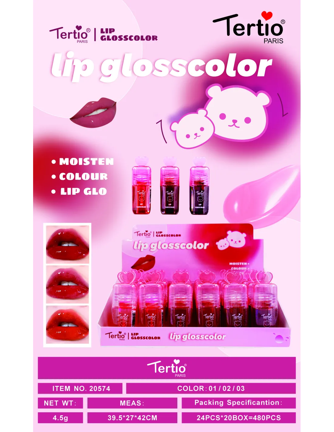 El Lip Glosscolor de Tertio combina color vibrante con una fórmula hidratante que mantiene los labios frescos y nutridos.