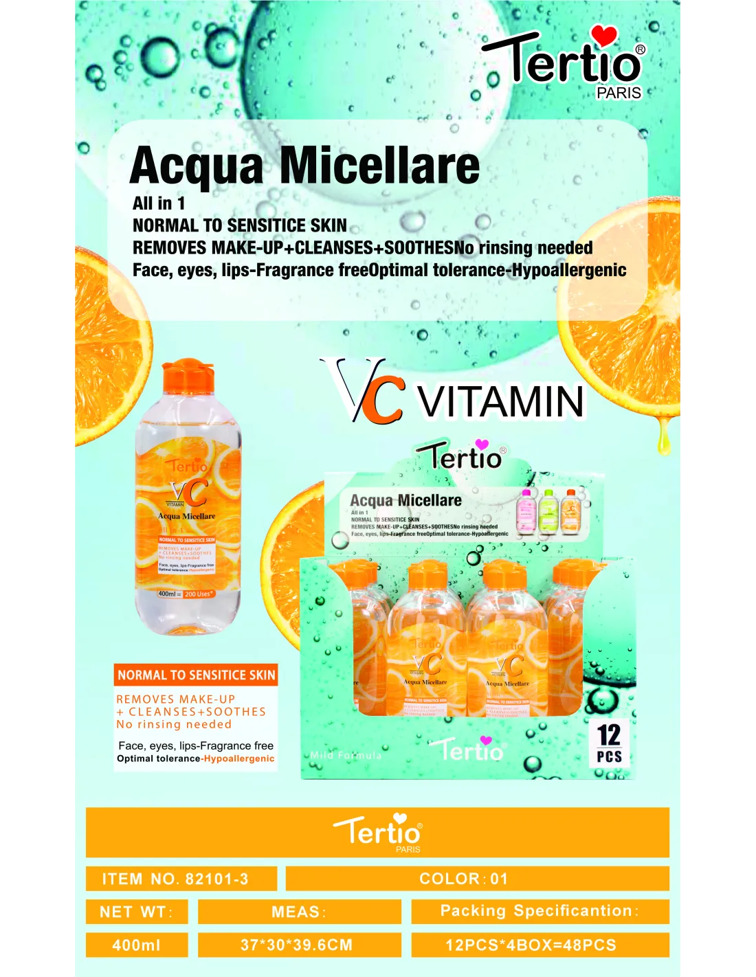 Tertio Agua Micelar Vitamina C 400ml – Limpia, Desmaquilla y Aporta Luminosidad