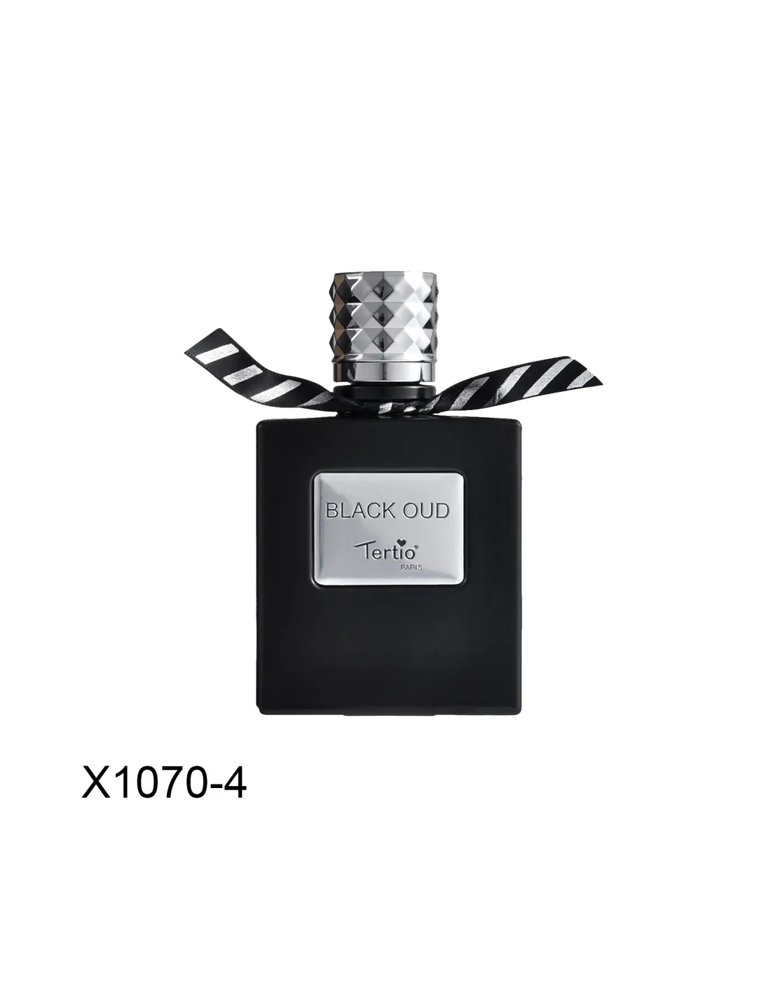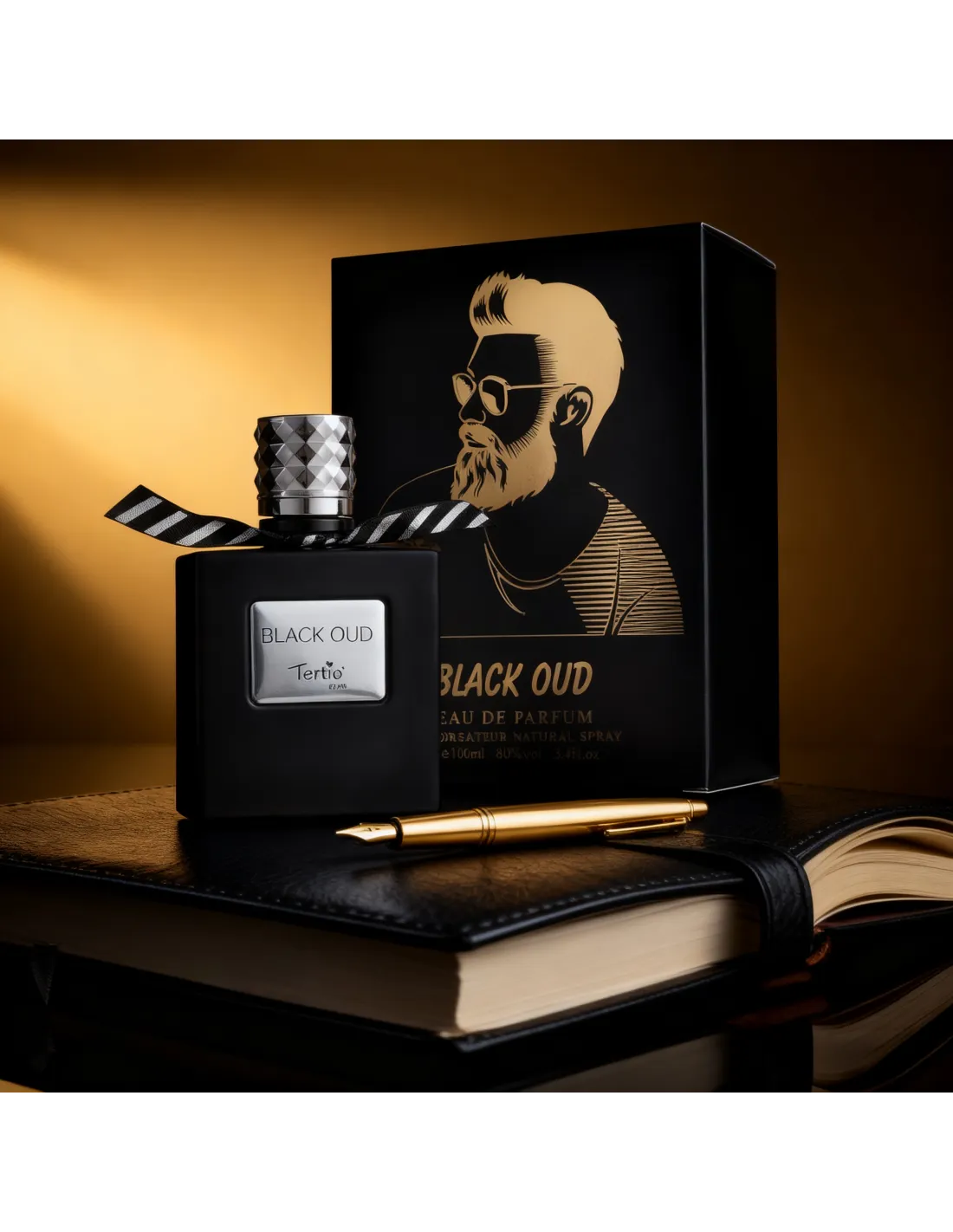 Black Oud mezcla maderas oscuras, especias y notas orientales, creando un aroma profundo, elegante y extremadamente seductor.